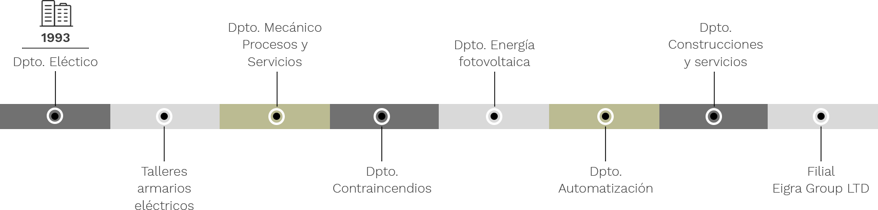 Debido a la creciente demanda en proyectos a lo largo de los años, Grupo Eigra ha creado distintas divisiones especializadas en diversas tecnologías para ofrecer un servicio más completo. Esto permite segmentar las soluciones por competencias tecnológicas, sumando todas ellas en una oferta integradora y perfectamente coordinada desde una visión de project management.